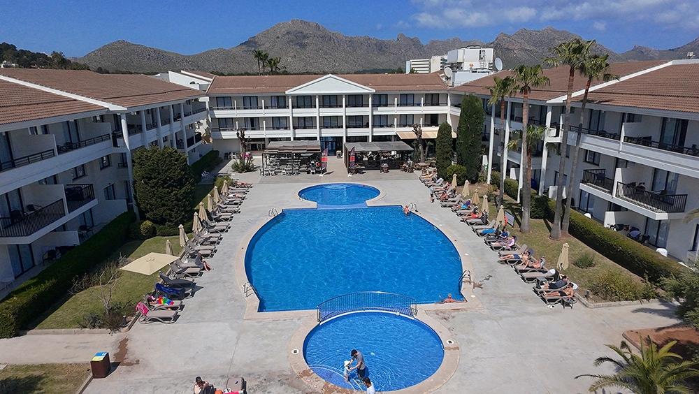 The 3-star Bahía Pollensa is situated 200 metres from the sea front behind the Hobby Club at the southern end of Puerto Pollensa. Its fully air-conditioned apartments are housed in a modern complex which boasts a large outdoor pool and sun terrace, and a convenient on-site supermarket. Apartments are smart and bright and have a separate bathroom, a kitchenette with a hotplate, microwave oven, fridge and kettle to enable you to enjoy post-ride refreshments. They also have satellite TV, a private balcony where you can enjoy a coffee in the morning or a post-ride stretch and recovery drink. You can also spend some time after your ride relaxing by the lovely outdoor pool, where you can have a drink and a snack on the terrace.
